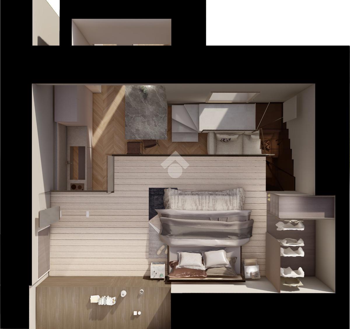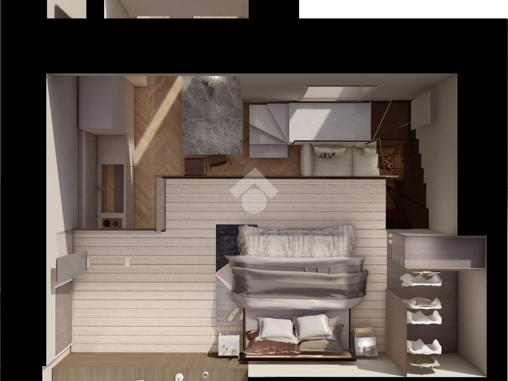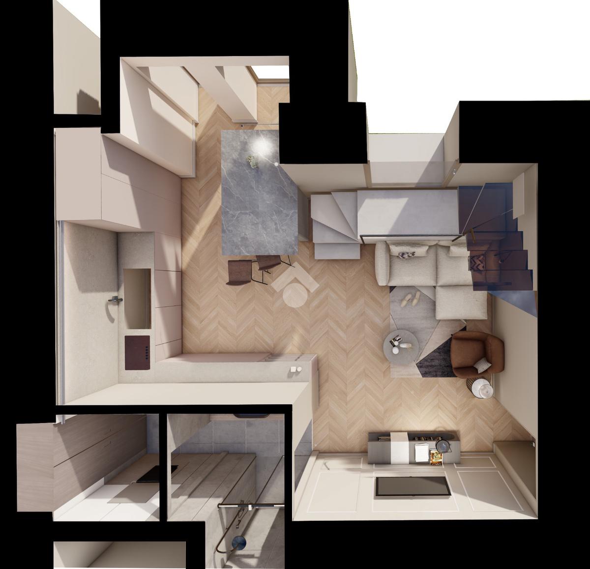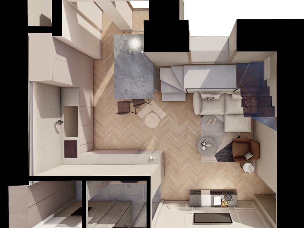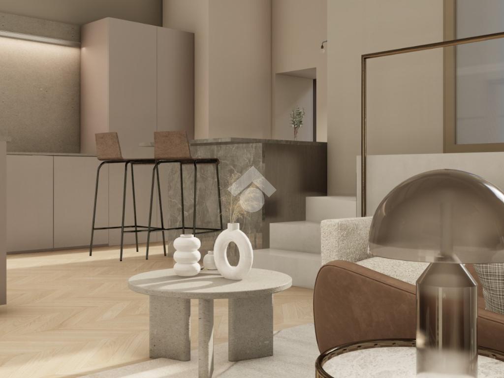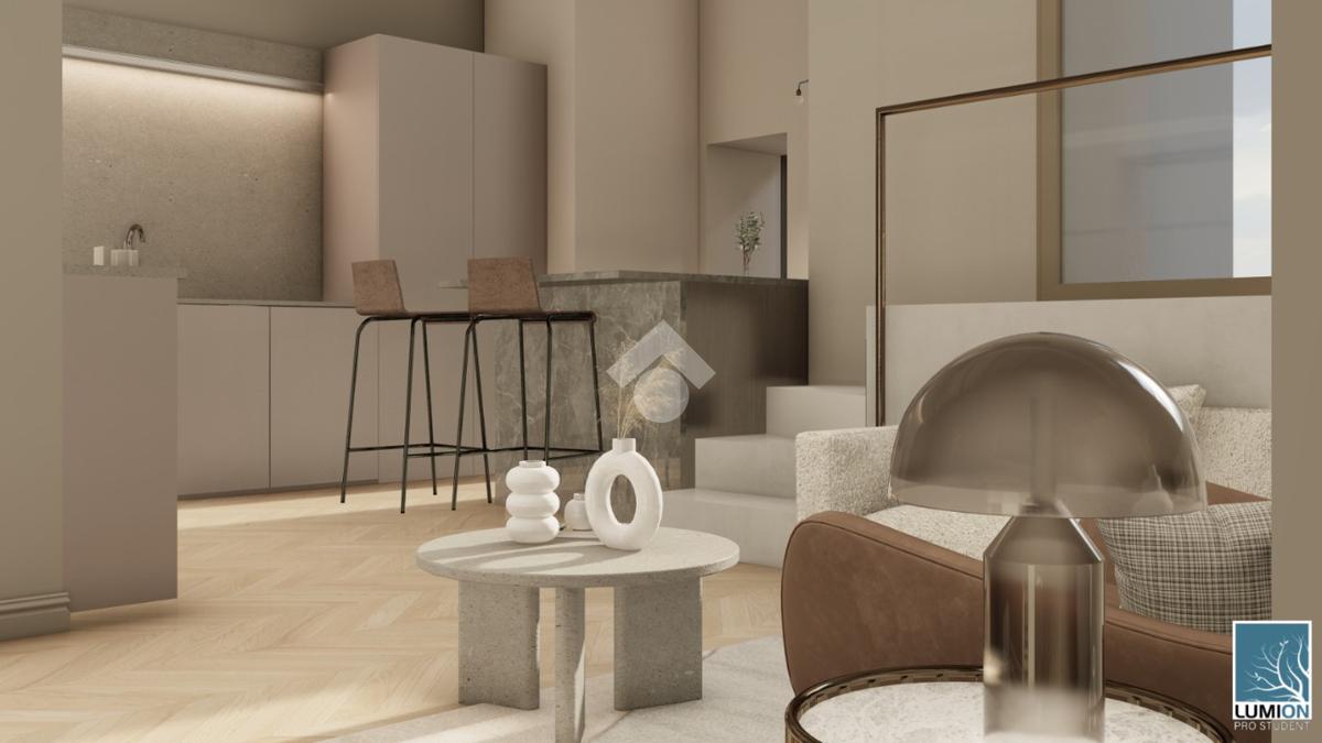 L’alloggio verrà consegnato chiavi in mano ed è composto da ingresso su ampio living con cucina a vista, bagno e ampio soppalco di circa 15 mq, ideale come zona notte o studio.