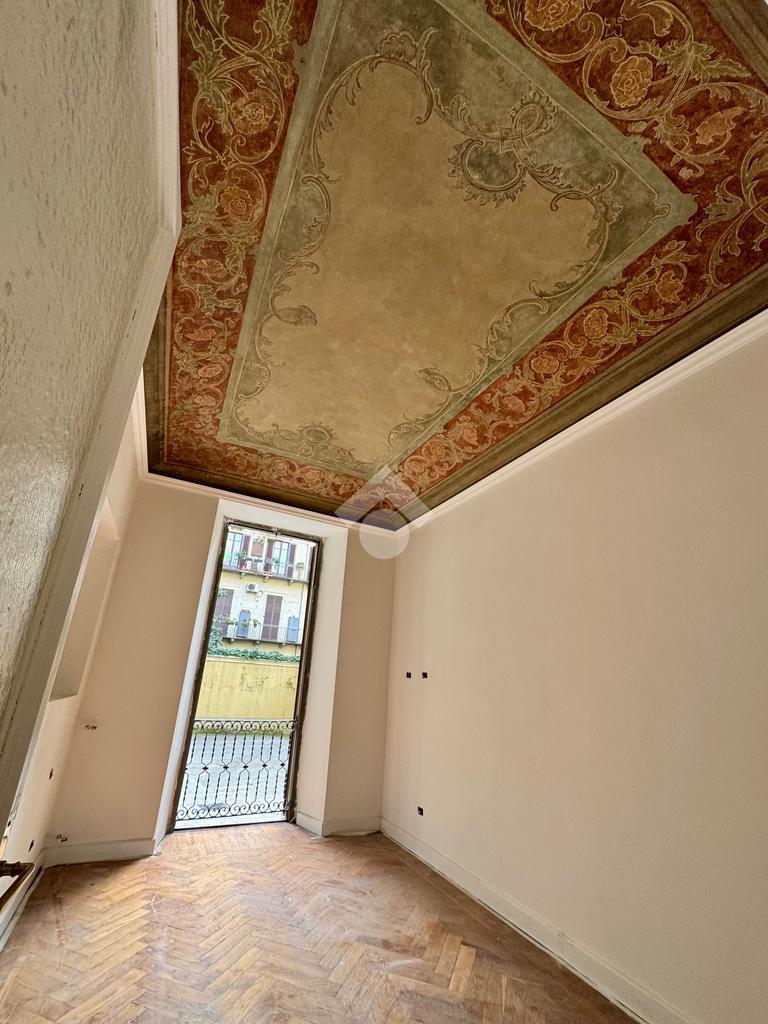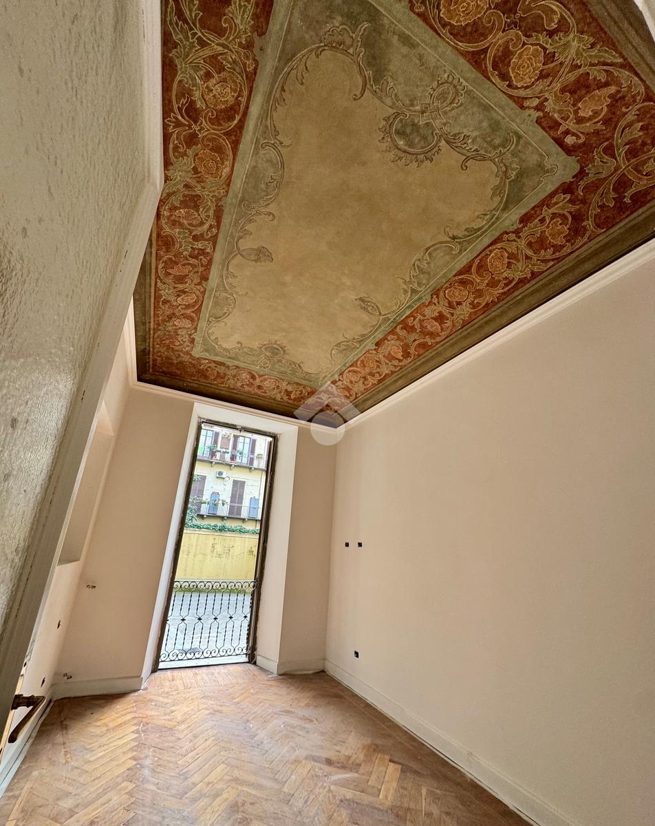 L'alloggio sarà terminato a breve ed è stato oggetto di una accurata e attenta ristrutturazione, ma conservando i particolari dell'epoca, quali i meravigliosi soffitti affrescati, i parquet e le porte interne. I grandi infissi esterni sono invece stati sostituiti con quelli nuovi a taglio termico, tutti gli impianti sono nuovi e certifcati e l'aria condizionata presente in ogni locale.
